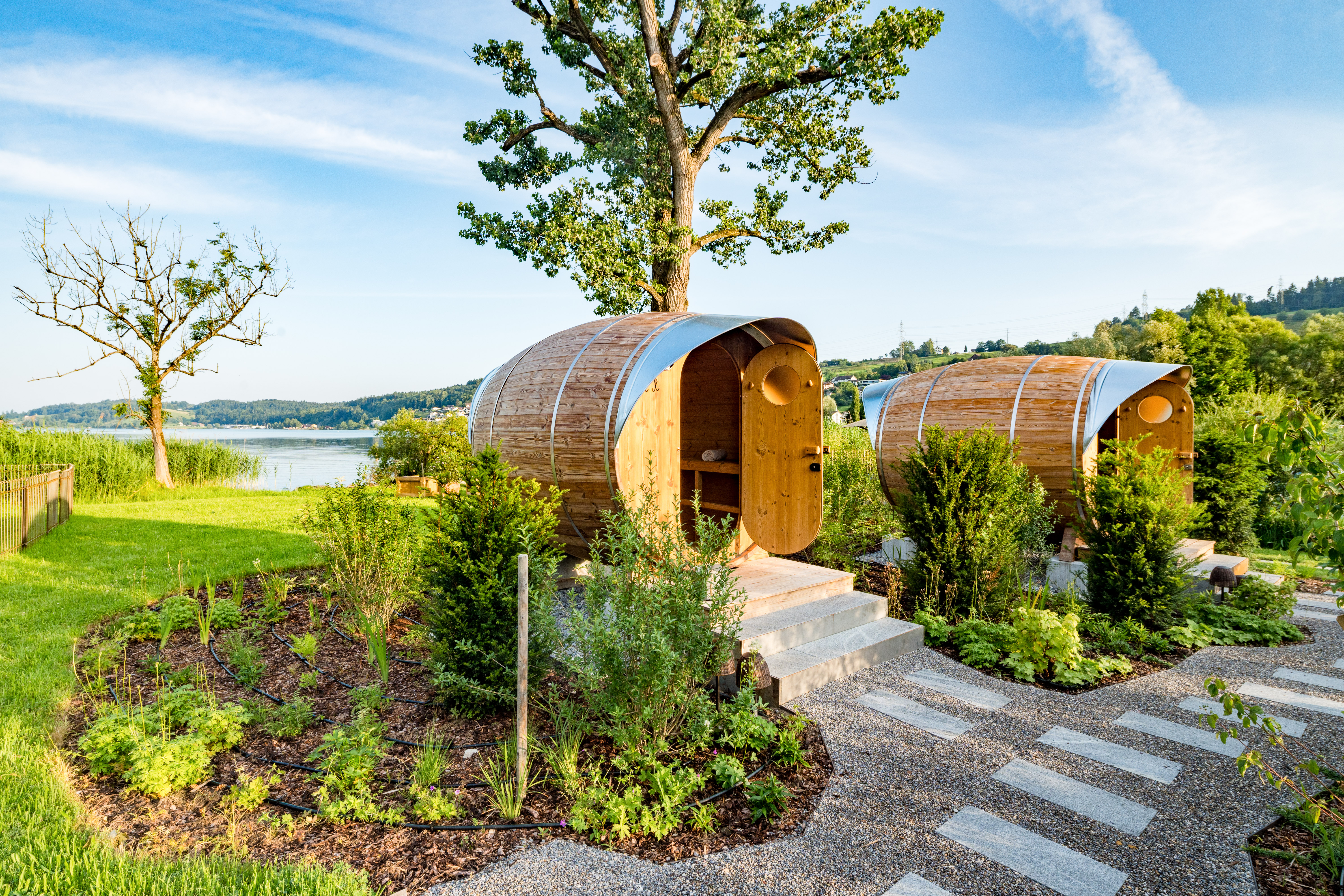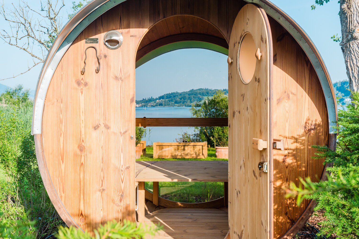 - Saunagang in unserer Outdoor-Weinfasssauna mit Panoramablick